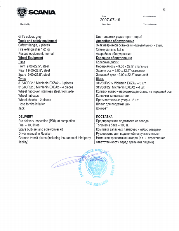 Своевременное обслуживание и ремонт на официальной СТО "Scania". Подтвержденная история обслуживания.