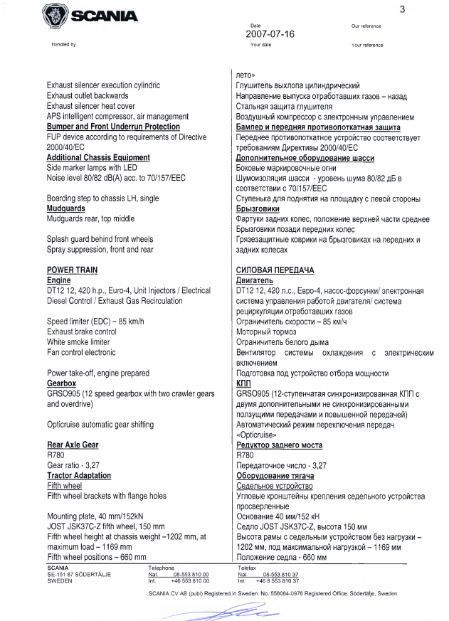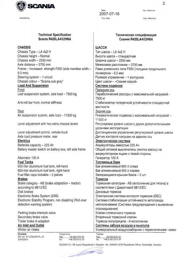 Скания R420LA. Год выпуска - 2007.