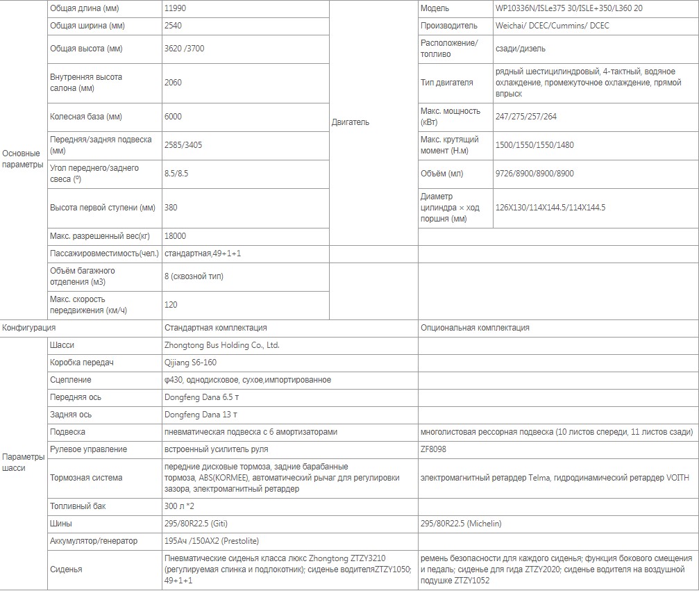 Автобус междугородний туристический Zhongtong 6215H (серия Cruise)